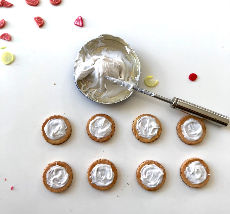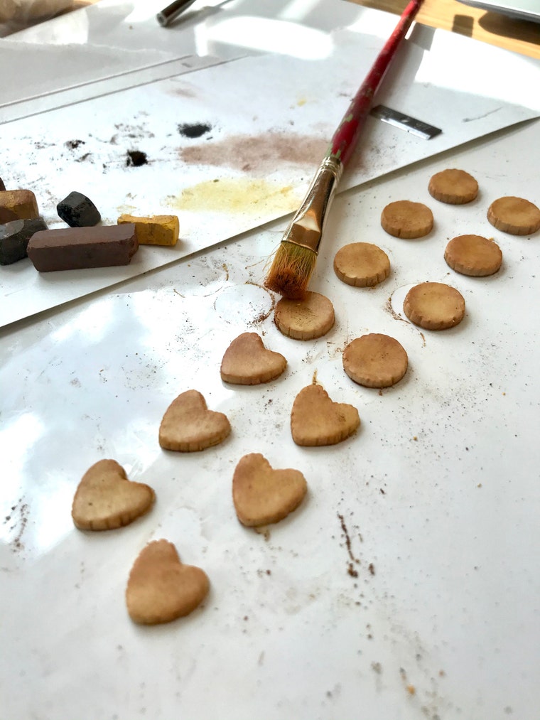 Using chalk pastels to "bake" tart bottoms before icing and decorating -